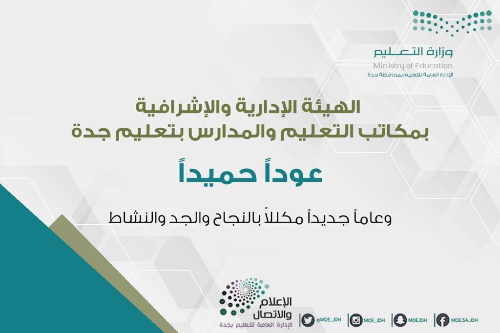 إدارة تعليم جدة On Twitter مدير عام تعليم جده أرحب بعودة الزملاء والزميلات من الهيئة الإشرافية والإدارية والقيادات في مكاتب التعليم والمدارس إلى مقار عملهم غدا الأحد متمنيا للجميع عاما مكللا