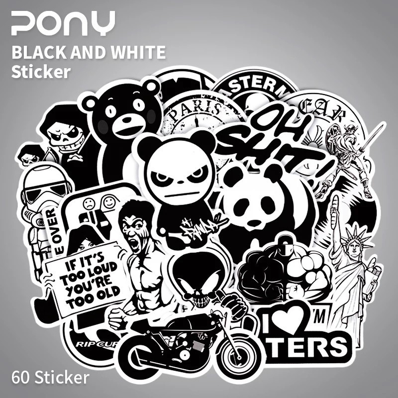 60 Pcs Random Black And White Sticker Graffiti Punk Jdm Cool Stickers For Car Laptop Skateboard Suitcase Bike Helme Shopee Singapore