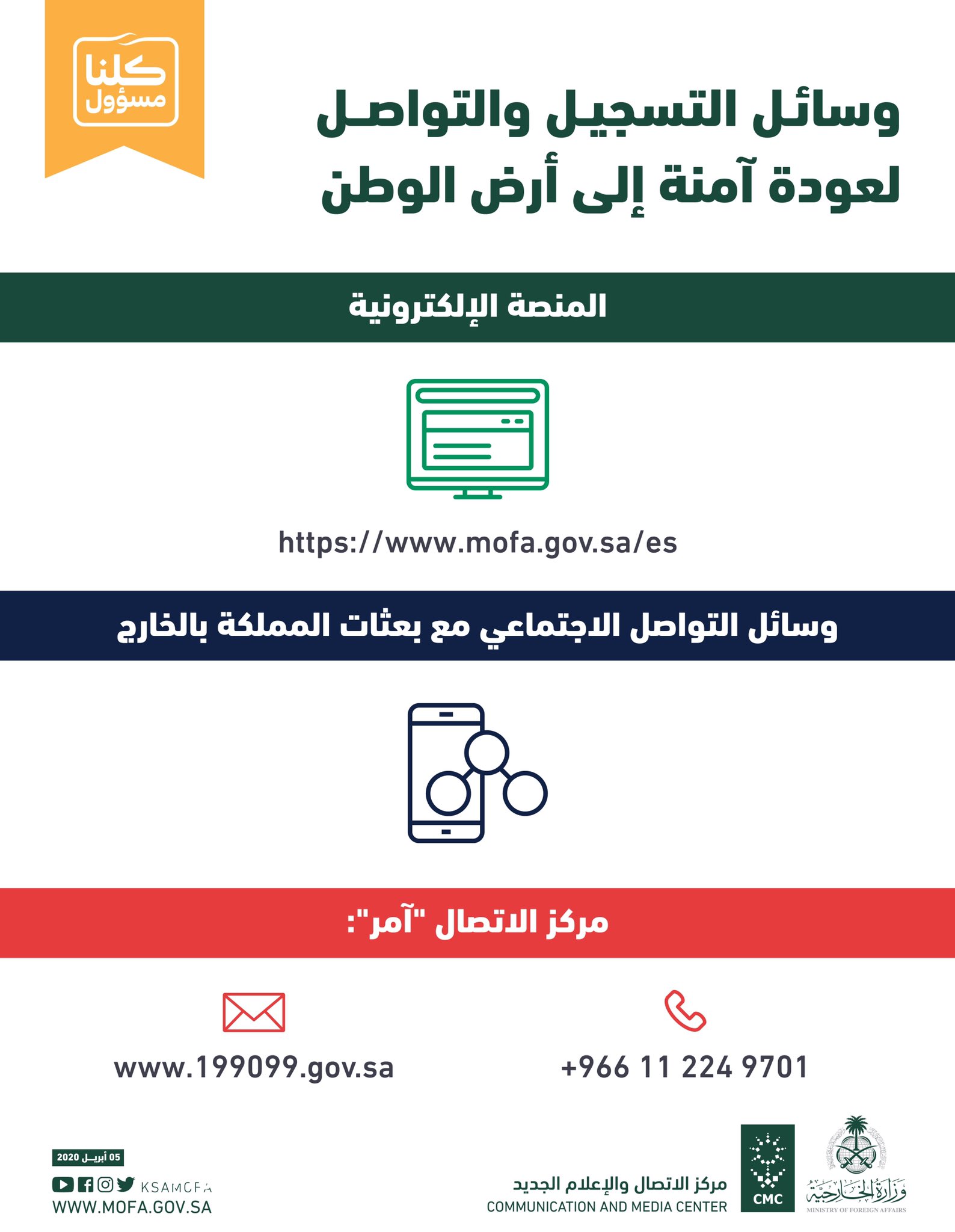 وزارة الخارجية On Twitter عودة آمنة التسجيل المنصة الإلكترونية Https T Co F7hpaidpsp التواصل مركز الاتصال آمر Ncc199099 وسائل التواصل الاجتماعي لبعثات المملكة بالخارج Https T Co Oikxrkjawk